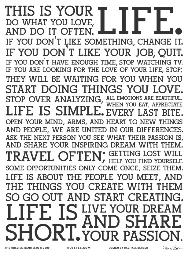How have I never heard of The Holstee Manifesto before now? Anyone needing a kick in the pants, this is for you:
