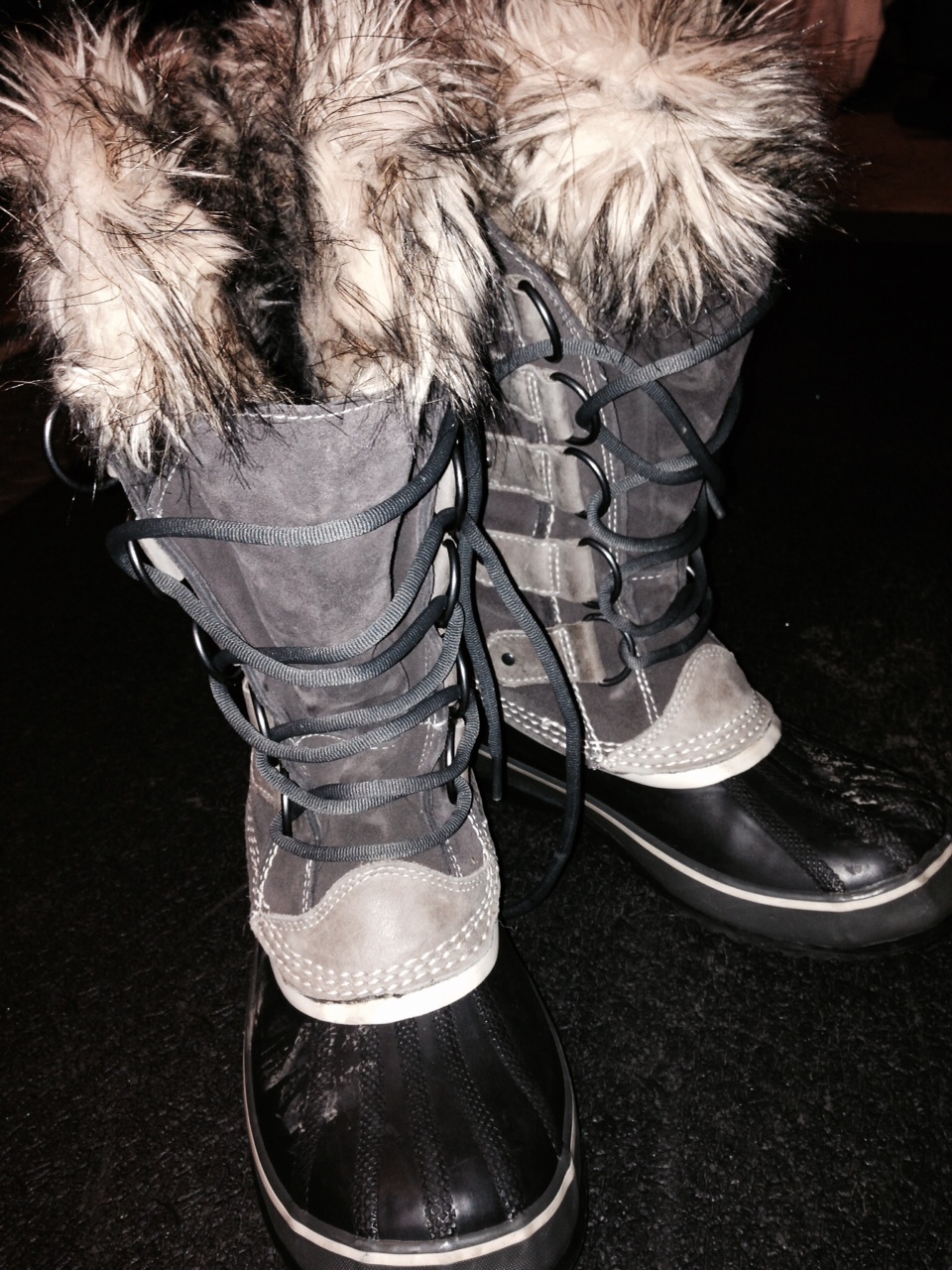photo 2As someone with a healthy shoe obsession, you might be surprised to hear that I only have five pairs of winter boots. (I don’t count those is my 65+ pairs of footwear.) Some are for pure function, like my Merrell hiking-style winter boots that I use for walking my dogs. Others are for warmth for long stretches of outside activity where I want to look a little more ‘stylish’, like my glorious Joan of Arctic Sorrels (which I tend to pair with an Under Armour thermal base, skinny jeans, a winter leather jacket and a crocheted hat).